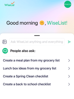 Ask WiseList is your built in AI helper designed to make daily life easier, faster, and more organised. Whether you need meal inspiration, help managing your budget, or a quick summary of a document, Ask WiseList has you covered all within the app.